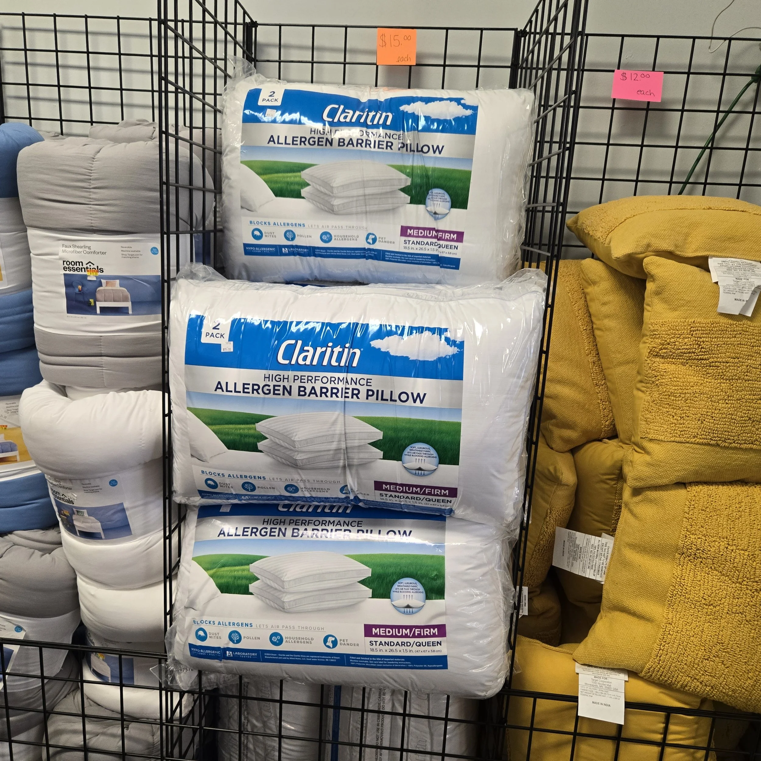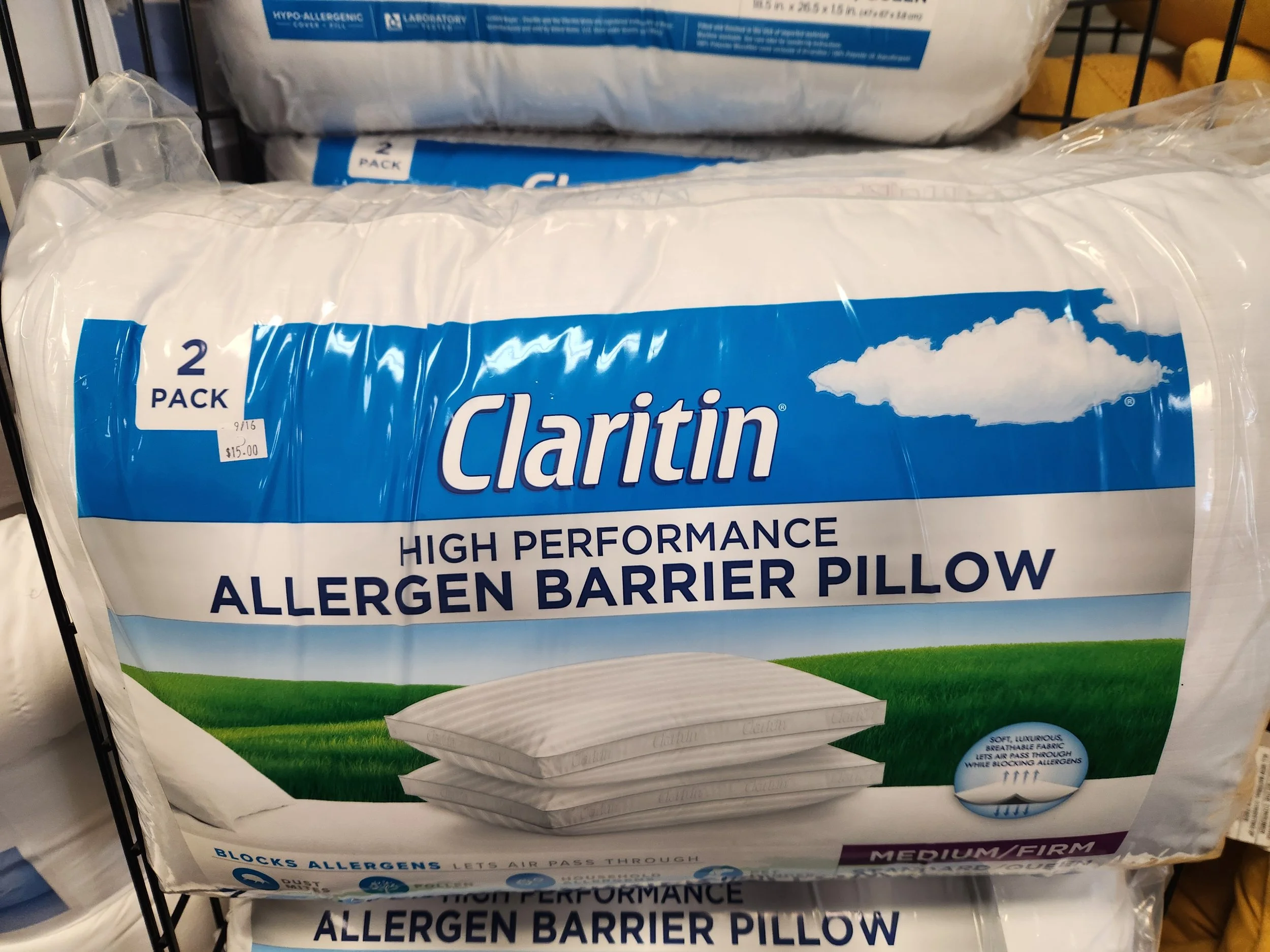 Allergy sufferers rejoice! Claritin™ High Performance Allergen Barrier fabric effectively protects your pillow against common household allergens including dust, pollen and even pet dander. The cover is soft and breathable, and the Claritin™ pillow is filled with a lofty hypoallergenic down alternative filling. This Claritin™ pillow has been specially designed to provide additional comfort and support. Sleep in true comfort with the Claritin™ High Performance Allergen Barrier Pillow.
