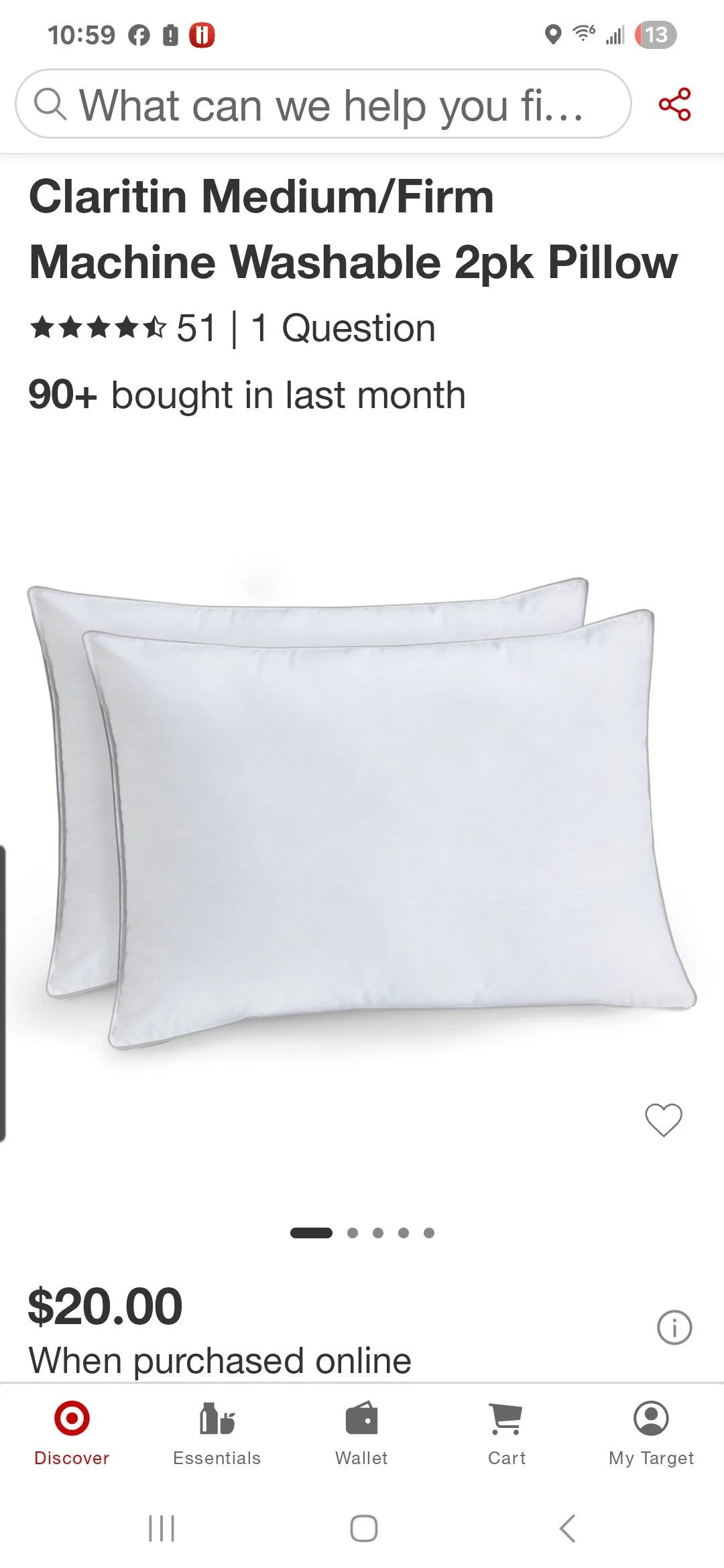 Claritin Medium/Firm Machine Washable 2pk Pillow